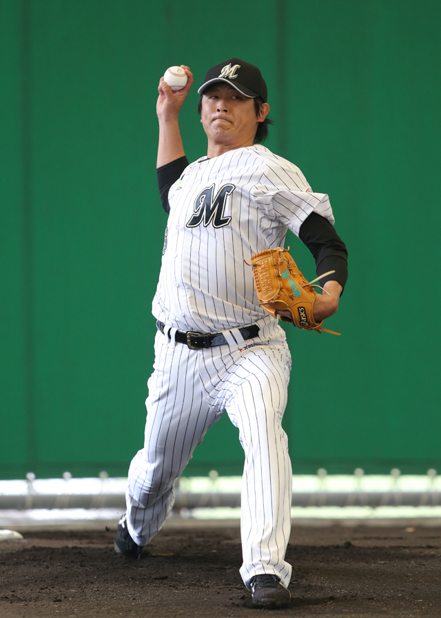 春季キャンプは第1クール最終日を迎えました。冷たい風を感じる気候の中、前日の益田投手に続いてこの日は涌井投手が初のブルペン入りを果たしました。多くの報道陣が詰め掛けるなど注目度の高さを感じさせる中、一番に登場した涌井投手。続いて他の投手陣が姿を現すと、川満投手・涌井投手・藤岡投手・唐川投手・成瀬投手・松永投手という並びとなったブルペンはこれまでにない雰囲気に包まれました。その光景を見つめた伊東監督も「今日はピリッとしていて、今までとは違う雰囲気を感じた。(涌井投手の存在によって)他の投手からもいつもと違う気持ちのこもったボールを投げている印象を受けた」と話します。