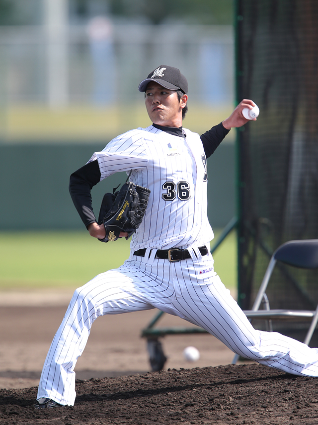 また、この日は初めて投手陣が打撃投手として登板。服部投手・木村投手・川満投手・香月投手・上野投手・大嶺祐投手・阿部投手が、打撃練習をする野手陣への投球を行いました。