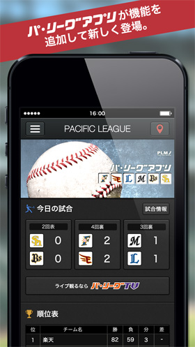 毎年好評頂いているパ・リーグ6球団公式iPhone・Androidアプリ『パ・リーグアプリ』の2014版が新機能を追加して本日配信を開始しました。