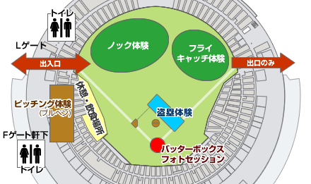 | 内容 | バッターボックスに立って記念写真の撮影を行うことが可能です。 |