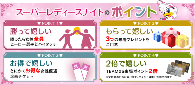 野球場を居心地が良く女性のみなさんに喜んでいただける場所にできるよう、水曜女性の日拡大版「スーパーレディースナイト」の開催が決定しました!!