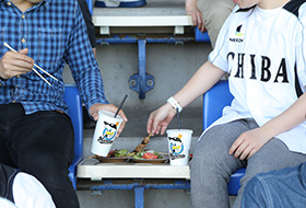 テーブルにはカップホルダーと、食べ物や荷物を置くことのできるスペースがあり、飲食を快適に召し上がりながらご観戦いただけます。