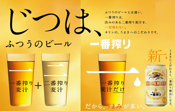 世の中の一般的なビールは、「一番搾り麦汁」と「二番搾り麦汁」(※)でできています。
