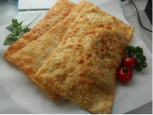 薄い生地にひき肉やチーズなどを挟み、その場でからっと揚げます。