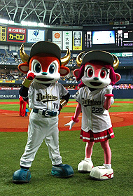 交流戦期間中のビジターキャラクターたちとの写真を更新しました。 セ・リーグ球団のマスコットたちとの交流の様子をお楽しみください。