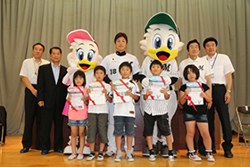 セレモニーの最後にはサプライズで児童全員から元気のいいロッテコールを送ってもらい、これからの巻き返しを誓いました。