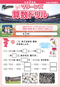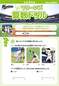 「マリーンズ算数ドリル」は、NPO法人「ちば算数・数学を楽しむ会」の製作協力のもと、千葉ロッテマリーンズが製作をしたもので問題にマリーンズの選手が登場したり、野球に関する出題があり、楽しみながら勉強ができる内容が満載となっています。
