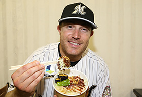 常に全力プレーのナイスガイ、チャッド・ハフマン選手にちなんだメニュー「ハフ満足丼」を販売開始いたします。