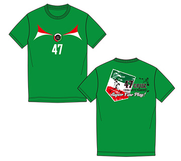 今シーズン、守備にバッティングに大活躍のクルーズ選手。初のプロデュースグッズは母国メキシコのサッカージャージをイメージした鮮やかなメキシカングリーンのドライシャツです。