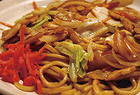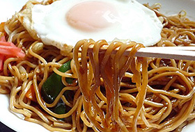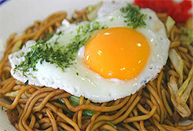 宮城県石巻市のご当地グルメです。麺の色が茶色く焼きそばの上に目玉焼きが乗っかったのが特徴です。