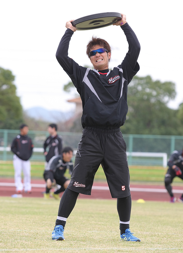 休日明けということで、ストレッチなどウォーミングアップをいつも以上に入念に行い、強化ランニングを開始。はじめに400m走を5本、その後はシャトルランを実施し、合計8000mを走り切りました。そのあとは、このキャンプでおなじみとなっているサーキットトレーニング。バービージャンプやアームカールなどの種目が並ぶなか、この日選手たちが最も苦戦していたのは、20kgのプレートを使ったメニュー。苦しみながらも午前中の全ての時間を費やした強化メニューを終え、選手たちは「ここからスタートだ!」と言いながら午後に行う打撃や守備練習へと向かいました。