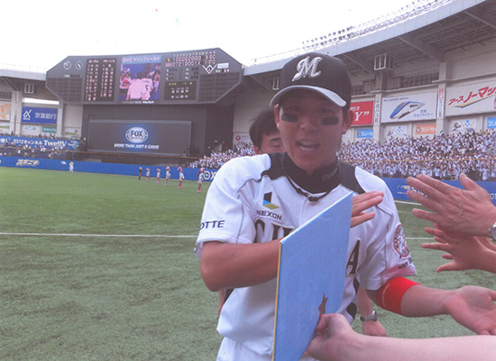 「受賞作品についてですが、野球を見ているだけでは見逃してしまいそうな、マリーンズファンならではの目線の写真で素晴らしいと思いました。選手同士の絆が見えるようで、心惹かれました。」