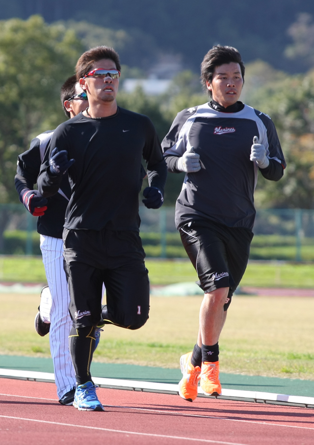 2014年の鴨川秋季キャンプは最終クールに突入。前クールではシート打撃など実戦に近い練習を行いましたが、この日は従来通り体力強化メニューを午前中に実施しました。