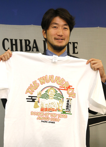 2014年パ・リーグ新人王に輝いた石川投手の記念グッズを一斉発売。