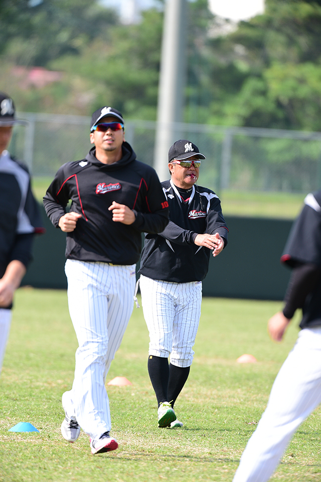 全体練習が始まると、ブルペンでは伊東監督が投手陣の仕上がり具合を視察。涌井投手・石川投手らの投球を頷きながらじっくりと見つめ、藤岡投手には腕の振りについてアドバイスを送る場面もありました。