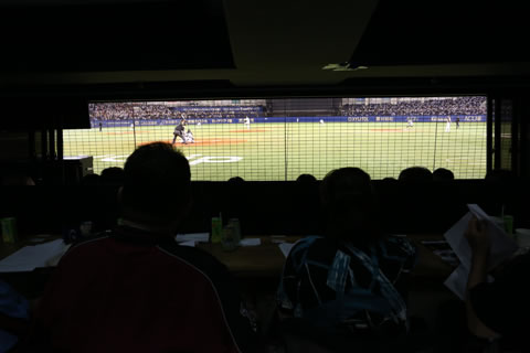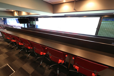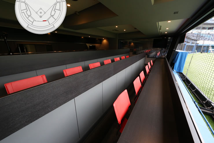 | ポイント1 | バックネット裏、バッターボックスに一番近い屋内観戦席です!! 選手目線で試合をご観戦いただけます。 |