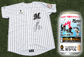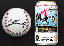 | 賞品 | ![]() 1等: 選手直筆サイン入りレプリカユニフォーム&サッポロ生ビール黒ラベル「2015千葉ロッテマリーンズ応援缶」350ml缶 1ケース(3名様) ![]() 2等: QVCマリン内野指定席Sペアチケット&マリーンズ選手直筆サインボール&サッポロ生ビール黒ラベル「2015千葉ロッテマリーンズ応援缶」350ml 6缶セット(3名様) ![]() 3等: サッポロ生ビール黒ラベル「2015千葉ロッテマリーンズ応援缶」350ml 2缶セット(300名様) ![]() サッポロビール千葉工場賞: 千葉ビール園ジンギスカン食べ放題と生ビール飲み放題のペアチケット(10名様)