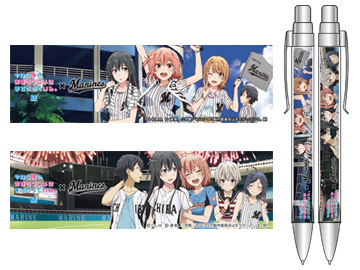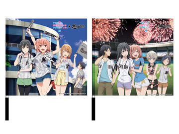 千葉県千葉市を舞台にしたアニメ「やはり俺の青春ラブコメはまちがっている。続」と千葉ロッテマリーンズとのコラボグッズです。