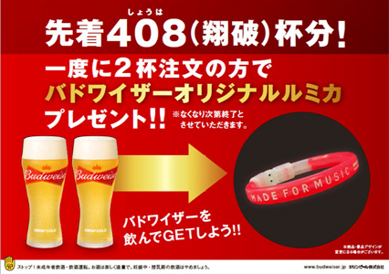 今シーズンより球場一塁側Aゲートそばにオープンしたバドワイザー販売カウンター。 6月9日(火)には、バドワイザーダンサーズが登場し、バドワイザー2杯ご注文のお客様に、もれなく“バドワイザールミカ"をプレゼントいたします!!(先着408杯) また、試合前には球場正面ボールパークステージでバドワイザーダンサーズのダンスショー(17時15分頃~)も予定しています。 皆様、是非ご来場ください!!
