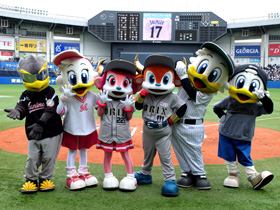 パ・リーグビジターチームのマスコットキャラクターやチアの来場情報と、マーくんファミリー&M☆Splash!!のビジター球場遠征情報を更新しました!!