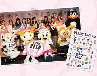 当日は、千葉ロッテマリーンズ、埼玉西武ライオンズ、読売ジャイアンツ、東京ヤクルトスワローズの4球団のマスコット、チアガール、球団スタッフと、横浜DeNAベイスターズの球団スタッフが集合し、女性が観戦を楽しむノウハウをまとめたフリーペーバー「野球女子ノススメ」を配布するほか、ステージイベントや球団マスコットとのフォトセッションを実施します。