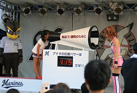 | 内容 | 憧れのピッチャーマウンドに立てるチャンス!!球場正面ボールパークステージ大声コンテストを開催します。 『助けて!セコム』と叫んでいただき、一番大きな声を記録した男女1名ずつにファーストピッチの権利をプレゼントいたします。 |