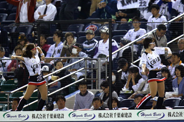 試合中のグラウンドでもマリーンズ選手達やファンを盛り上げます!!