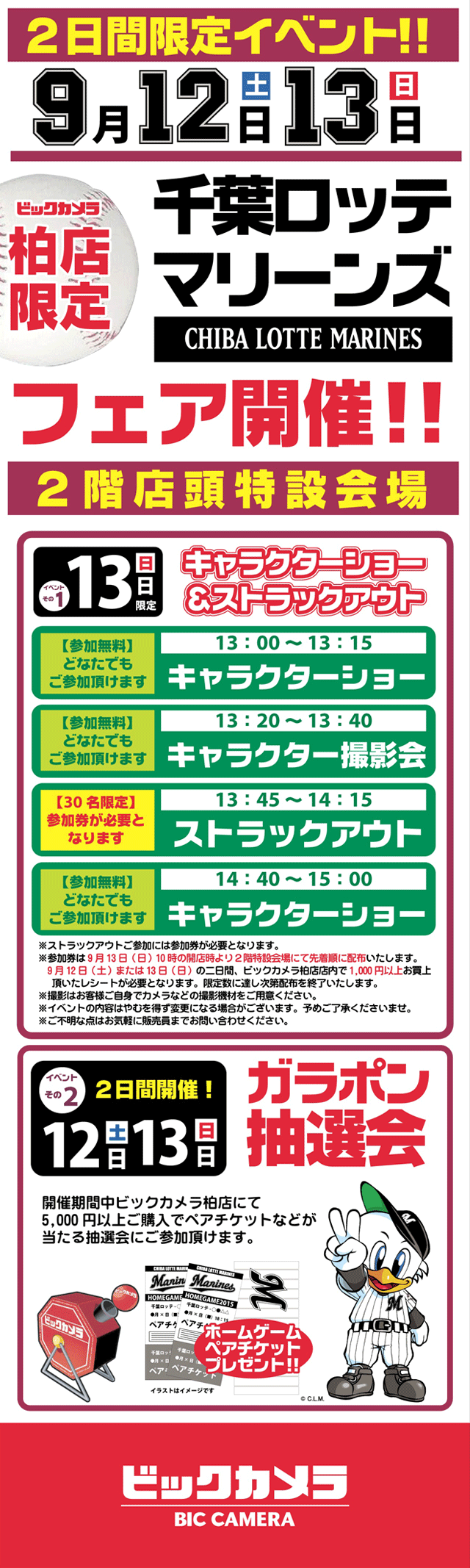9月13日(日)ビックカメラ柏店の2階店頭特設会場にて、サイングッズが当たる、パーフェクトピッチングイベントを実施!!