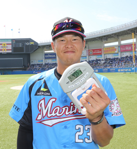 会場にはマリーンズの選手が事前に計測した記録が掲示されています。
