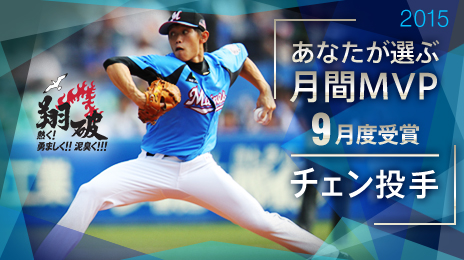 10月1日~10日まで公式スマートフォン・携帯サイトで行われた「あなたが選ぶ9月の月間MVPはどの選手?」投票ですが、今回は522票でチェン投手が1位に輝きました!!