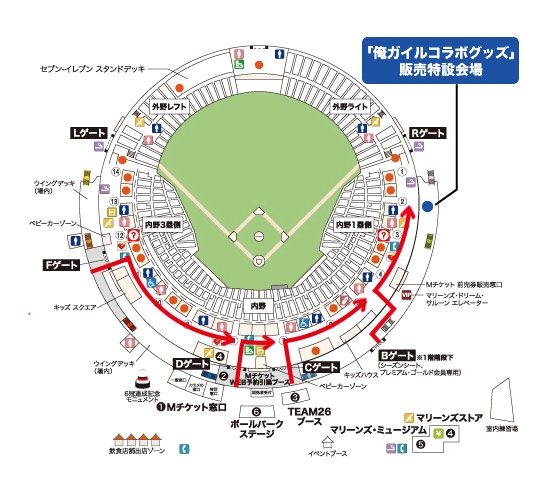 - ※Bゲートは2015年シーズンシートオーナー、2015年TEAM26プレミアムゴールド会員専用