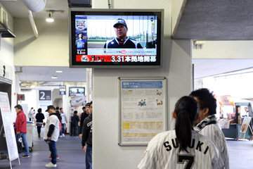 昨シーズン、コンコースに設置しました大型TVモニターを今季さらに増設します。球場内どこに居ても試合観戦を楽しめるよう、コンコース内だけでなく、スタンドデッキ、バーベキューシートにも設置します。