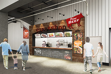 バックネット裏のコンコースに新たに飲食店舗がオープン!!名物はオーストラリア産のサーロインステーキを使用した丼や生ビールとのセット!!肉好きな方にはきっと満足していただけるお店です!!