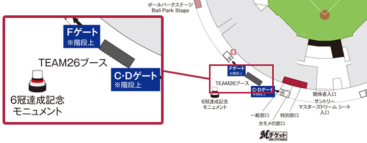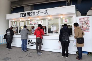 これまで球場正面横にあった公式ファンクラブ TEAM26ブースを、装い新たにMチケット一般窓口横に移転します。3月8日(火)のオープン戦より利用開始予定です。