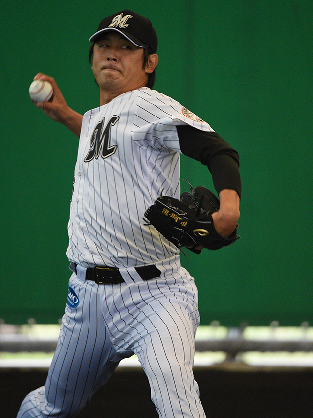 他の投手が続々と投球を終え、最後はブルペンを独占する格好となった涌井投手。途中、福浦選手とサブロー選手が打席に立ち、互いに実戦感覚を確かめる一幕もありました。