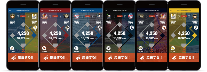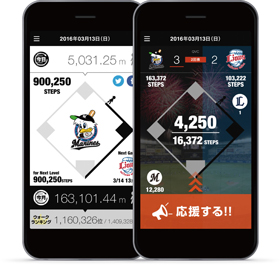『パ・リーグ ウォーク』は、全てのスマートフォンに対応しており、ファンは一度アプリをダウンロードすれば、後は自動的に歩数が計測される仕組みです。ファンはまず自分が応援する球団を選択します。日常的な利用では、「本日の歩数はダイヤモンド何周分です」と表示が出たり、応援する球団の選手が画像で「今日はたくさん歩いたね!」などと呼びかけてくれます。試合日の利用では、応援する球団毎にファンの合計歩数を競ったり、合計歩数の順位を表示したりします。※
