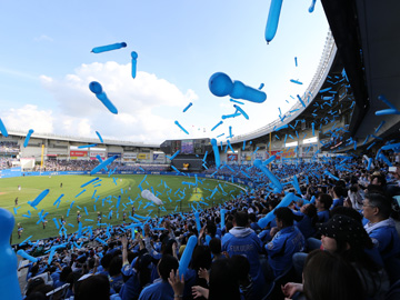 試合終了後に監督・コーチ、選手全員がスタンドにサインボールの投げ入れを行います。