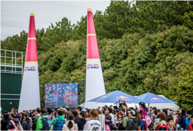 また、球場正面イベントエリアにおいては、両日ともにレッドブル・エアレース唯一の日本人パイロット室屋義秀選手(Team FALKEN) のレース機の実物大模型と、実物の約半分のサイズ(12m)のパイロン・レプリカを展示いたします。