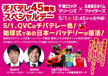チバテレは今年開局45周年となりました。開局記念日・5月1日(日)のQVCマリンフィールドはチバテレ色一色!!