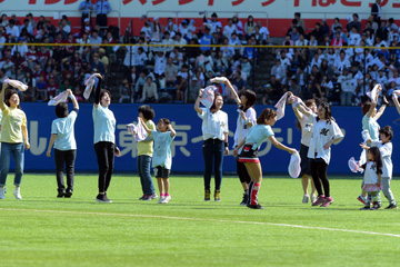 タオルを使って、試合中のグラウンドで「We Love Marines」を踊りましょう!!