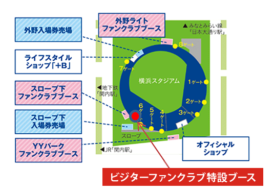 | 特設ブース場所 | 横浜スタジアム場外 スロープ下入場券売場横 ビジターファンクラブ特設ブース  |