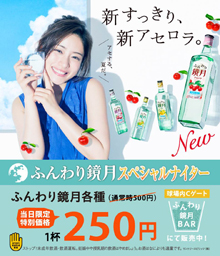| 内容 | 特典[1] ふんわり鏡月:通常500円→当日限り250円 特典[2] 当日2杯購入された方から抽選で200名様に石原さとみさんのオリジナルQUOカード(500円分)をプレゼント |