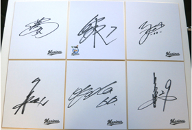 | 景品 | ※景品画像はすべてイメージとなります。 1等 サイン入りレプリカユニフォーム [5口] ※選手サインは選べません。 ![]() 2等 選手直筆サインボール [15口] ※選手サインは選べません。 ![]() 3等 サイン入り色紙 [20口] ※選手サインは選べません。 ![]() 参加賞 オリジナルウエットティッシュ [全員] |