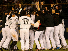 この日の千葉ロッテは初回に4点を先制したものの、2回表に追いつかれ、3回表には2点のリードを許しました。以降も両チームが激しく点を取り合い、6回を終えて12対12の同点になり、延長戦へ突入しました。迎えた10回裏、ベテラン井口選手が、自身11本目のサヨナラ安打で試合を決めました。
