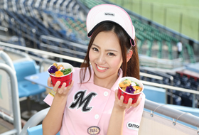 「スーパーレディースデーに向けて、“女性がビールを飲む時に食べたいおつまみ"をイメージし作りました。私は売り子として働いて9年目になりますが、女性のお客様から『さっぱりしたおつまみが食べたい』という声をよく聞くこともあり、サッパリしていてカワイイおつまみをコンセプトにメニューを考えました。1番のポイントはカラフルな食用のお花で、これまでのQVCマリンにはなかったカワイイおつまみです。是非ご賞味いただければと思います。女性の皆さん、6月10日は冷たいビールをグビグビしに球場へおこしください。笑顔でお待ちしています。」