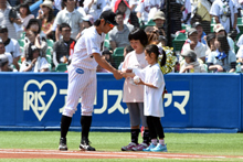 監督・コーチ、選手全員がスタンドにサインボールの投げ入れを行います。