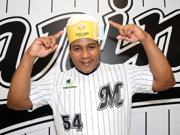 パッションオブザファンも特別バージョン!!乾杯ビールハットをかぶってマリンビジョンにアピールしよう!!