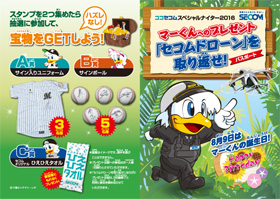 また、球場場外のセコム特設ブースでは、セコムとマリーンズのコラボレーションユニフォームに応援メッセージを書くだけで参加できる『豪華賞品!大抽選会』を開催します。