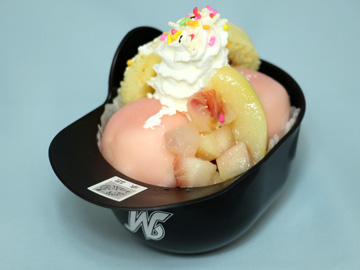 サブロー選手の出身地・岡山の特産品である「桃」を使用したパフェです。