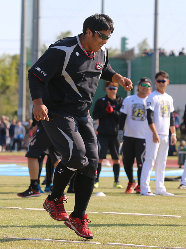 指導を担当した角田氏曰く、バネのある動き方ができている選手、体幹がぶれることなく動ける選手など様々で、香月一選手・大木選手・成田投手・井上選手がとくにリズム感が良かったとのこと。また、この日は音楽が耳に入りづらかった選手もトレーニング次第で上達していくようで、対戦相手が存在する野球と同じく、自分以外のものの動きやペースに上手く対応する力をリズム感によって引き出していきました。